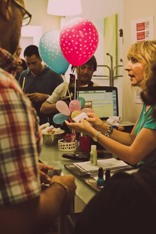 Entramos al comercio (un par de días antes por una cuestión de logística y por la tipología del comercio decidimos hablar con la dueña para que tuviera preparado ofertas, productos a precios especiales y la agenda libre para no interrumpir su trabajo o intimidad) y le dimos la sorpresa a la gente que participó del evento. Entramos y empezaron a materializarse todos esos conceptos que nos habíamos planteado al principio, ayuda, solidaridad, calidez, dulzura, emoción, sonrisas y alegría.