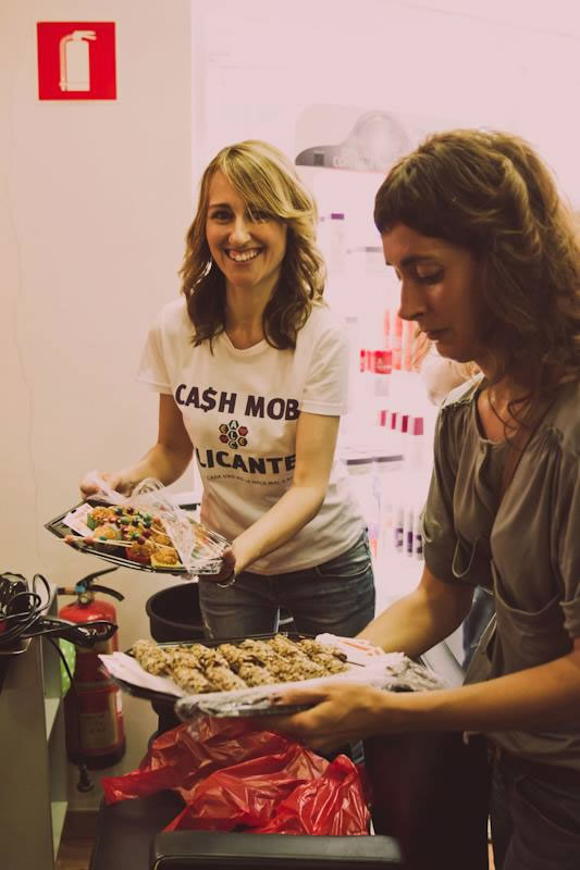 Sabemos que un cashmob es un movimiento solidario que a través de redes sociales se convoca a gente para hacer una compra solidaria y simbólica en comercios pequeños, tradicionales y de proximidad con dificultades en la ciudad de Alicante.