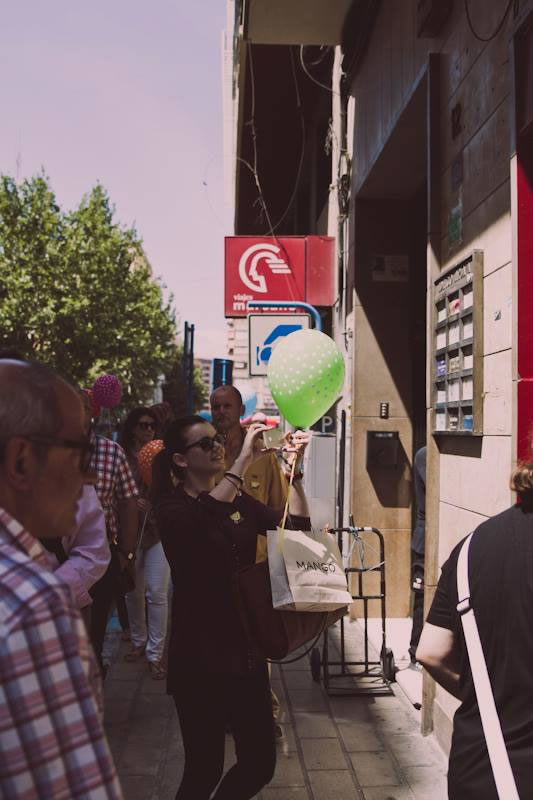 Cuando planteas un mensaje y unos conceptos, la materialización se hace mediante el lenguaje visual, aquí mediante la comunicación tradicional (reportajes, entrevistas etc), la oral (charlas con la gente, discursos), la escrita (carteles escritos a mano que transmiten mensajes cercanos, personales, no institucionales o fríos), la comunicación no verbal (miradas, sonrisas, brillo en los ojos, abrazos, risas, etc), elementos como los globos, chuches, delicias llenas de color, el color fue el elemento del lenguaje visual más importante en el momento de transmitir el mensaje, sin color este evento no hubiera sido igual.