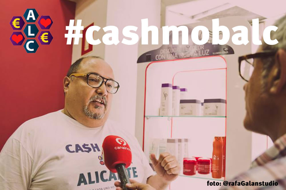También recuerdo con especial emoción y cariño, el evento #CASHMOB ALICANTE que organizamos junto a Mariangeles, Joaquín y Paloma… Aparte de la sensación de poder hacer algo útil para la ciudad y la sociedad, ayudar a alguien, generar un proyecto solidario con amigos, también nos sirvió para demostrarnos que las Redes Sociales, tienen como su nombre indica, un componente social muy importante, y ya no solo sirven para pasar el tiempo, sino que usadas de un modo adecuado pueden servir para ayudar! y eso no tiene precio!!!